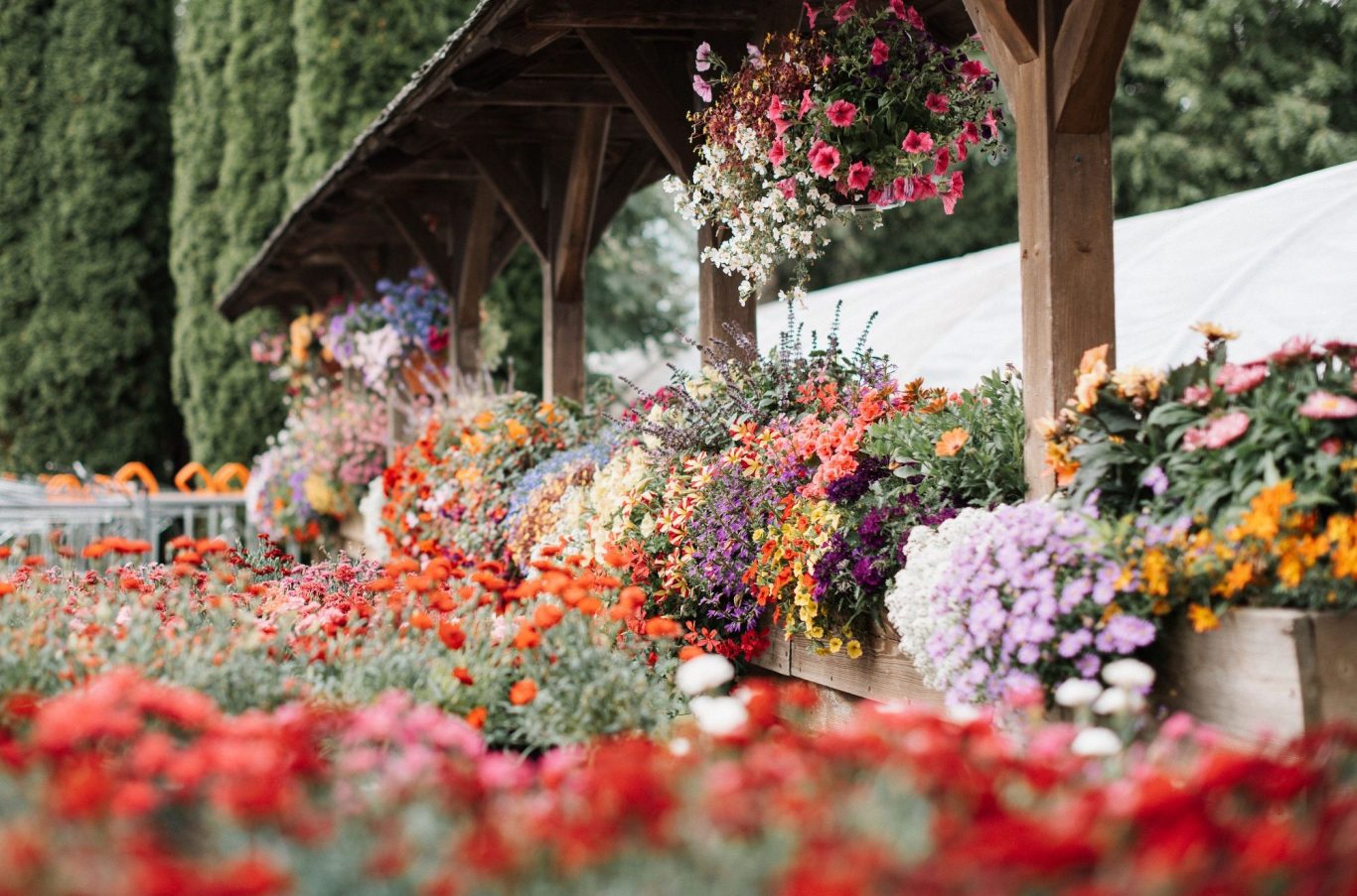 Tauchen Sie in ein Blumenmeer ein! Ein großes Angebot an selbstproduzierten Pflanzen wartet auf Sie.